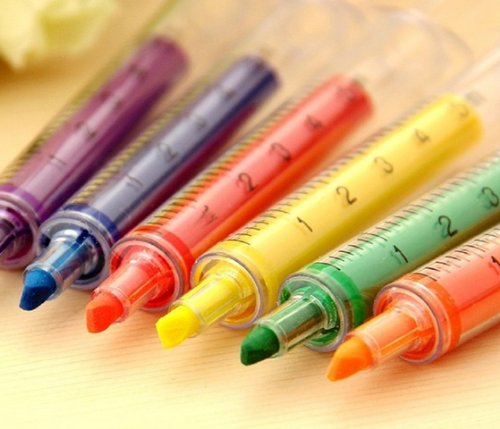 6pc Syringe Highlighter Pens with 6 Colors - B00E5K8YDQThese syringe hightlight pens come in a pack of Six, each with a different color liquid